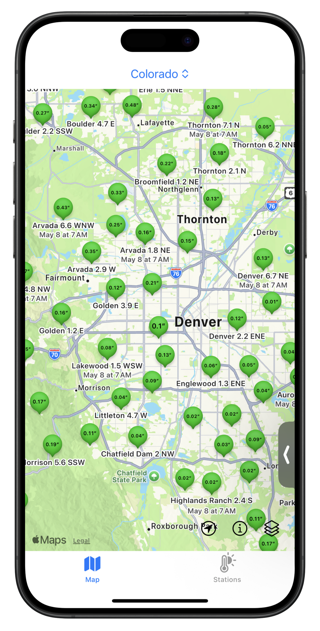 Weather Station Map for iPhone is licensed, not sold, to you. Your license is subject to your prior acceptance of this Licensed Application End User License Agreement. Backcountry Beta App subject to this EULA is referred to herein as the “Licensed Application.” The Application Provider reserves all rights in and to the Licensed Application not expressly granted to you under this EULA.a. Scope of License: Licensor grants to you a nontransferable license to use the Licensed Application as permitted by the Usage Rules. The terms of this Standard EULA will govern any content, materials, or services accessible from or purchased within the Licensed Application as well as upgrades provided by Licensor that replace or supplement the original Licensed Application, unless such upgrade is accompanied by a Custom EULA. Except as provided in the Usage Rules, you may not distribute or make the Licensed Application available over a network where it could be used by multiple devices at the same time. You may not transfer, redistribute or sublicense the Licensed Application. You may not copy (except as permitted by this license and the Usage Rules), reverse-engineer, disassemble, attempt to derive the source code of, modify, or create derivative works of the Licensed Application, any updates, or any part thereof (except as and only to the extent that any foregoing restriction is prohibited by applicable law or to the extent as may be permitted by the licensing terms governing use of any open-sourced components included with the Licensed Application).b. Termination. This Standard EULA is effective until terminated by you or Licensor. Your rights under this Standard EULA will terminate automatically if you fail to comply with any of its terms.c. External Services. The Licensed Application may enable access to Licensor’s and/or third-party services and websites (collectively and individually, "External Services"). You agree to use the External Services at your sole risk. Licensor is not responsible for examining or evaluating the content or accuracy of any third-party External Services, and shall not be liable for any such third-party External Services. Data displayed by any Licensed Application or External Service, including but not limited to financial, medical and location information, is for general informational purposes only and is not guaranteed by Licensor or its agents. You will not use the External Services in any manner that is inconsistent with the terms of this Standard EULA or that infringes the intellectual property rights of Licensor or any third party. You agree not to use the External Services to harass, abuse, stalk, threaten or defame any person or entity, and that Licensor is not responsible for any such use. External Services may not be available in all languages or in your Home Country, and may not be appropriate or available for use in any particular location. To the extent you choose to use such External Services, you are solely responsible for compliance with any applicable laws. Licensor reserves the right to change, suspend, remove, disable or impose access restrictions or limits on any External Services at any time without notice or liability to you.d. NO WARRANTY: YOU EXPRESSLY ACKNOWLEDGE AND AGREE THAT USE OF THE LICENSED APPLICATION IS AT YOUR SOLE RISK. TO THE MAXIMUM EXTENT PERMITTED BY APPLICABLE LAW, THE LICENSED APPLICATION AND ANY SERVICES PERFORMED OR PROVIDED BY THE LICENSED APPLICATION ARE PROVIDED "AS IS" AND “AS AVAILABLE,” WITH ALL FAULTS AND WITHOUT WARRANTY OF ANY KIND, AND LICENSOR HEREBY DISCLAIMS ALL WARRANTIES AND CONDITIONS WITH RESPECT TO THE LICENSED APPLICATION AND ANY SERVICES, EITHER EXPRESS, IMPLIED, OR STATUTORY, INCLUDING, BUT NOT LIMITED TO, THE IMPLIED WARRANTIES AND/OR CONDITIONS OF MERCHANTABILITY, OF SATISFACTORY QUALITY, OF FITNESS FOR A PARTICULAR PURPOSE, OF ACCURACY, OF QUIET ENJOYMENT, AND OF NONINFRINGEMENT OF THIRD-PARTY RIGHTS. NO ORAL OR WRITTEN INFORMATION OR ADVICE GIVEN BY LICENSOR OR ITS AUTHORIZED REPRESENTATIVE SHALL CREATE A WARRANTY. SHOULD THE LICENSED APPLICATION OR SERVICES PROVE DEFECTIVE, YOU ASSUME THE ENTIRE COST OF ALL NECESSARY SERVICING, REPAIR, OR CORRECTION. SOME JURISDICTIONS DO NOT ALLOW THE EXCLUSION OF IMPLIED WARRANTIES OR LIMITATIONS ON APPLICABLE STATUTORY RIGHTS OF A CONSUMER, SO THE ABOVE EXCLUSION AND LIMITATIONS MAY NOT APPLY TO YOU.e. Limitation of Liability. TO THE EXTENT NOT PROHIBITED BY LAW, IN NO EVENT SHALL LICENSOR BE LIABLE FOR PERSONAL INJURY OR ANY INCIDENTAL, SPECIAL, INDIRECT, OR CONSEQUENTIAL DAMAGES WHATSOEVER, INCLUDING, WITHOUT LIMITATION, DAMAGES FOR LOSS OF PROFITS, LOSS OF DATA, BUSINESS INTERRUPTION, OR ANY OTHER COMMERCIAL DAMAGES OR LOSSES, ARISING OUT OF OR RELATED TO YOUR USE OF OR INABILITY TO USE THE LICENSED APPLICATION, HOWEVER CAUSED, REGARDLESS OF THE THEORY OF LIABILITY (CONTRACT, TORT, OR OTHERWISE) AND EVEN IF LICENSOR HAS BEEN ADVISED OF THE POSSIBILITY OF SUCH DAMAGES. SOME JURISDICTIONS DO NOT ALLOW THE LIMITATION OF LIABILITY FOR PERSONAL INJURY, OR OF INCIDENTAL OR CONSEQUENTIAL DAMAGES, SO THIS LIMITATION MAY NOT APPLY TO YOU. In no event shall Licensor’s total liability to you for all damages (other than as may be required by applicable law in cases involving personal injury) exceed the amount of fifty dollars ($50.00). The foregoing limitations will apply even if the above stated remedy fails of its essential purpose.f. The Licensed Application and related documentation are "Commercial Items", as that term is defined at 48 C.F.R. §2.101, consisting of "Commercial Computer Software" and "Commercial Computer Software Documentation", as such terms are used in 48 C.F.R. §12.212 or 48 C.F.R. §227.7202, as applicable. Consistent with 48 C.F.R. §12.212 or 48 C.F.R. §227.7202-1 through 227.7202-4, as applicable, the Commercial Computer Software and Commercial Computer Software Documentation are being licensed to U.S. Government end users (a) only as Com